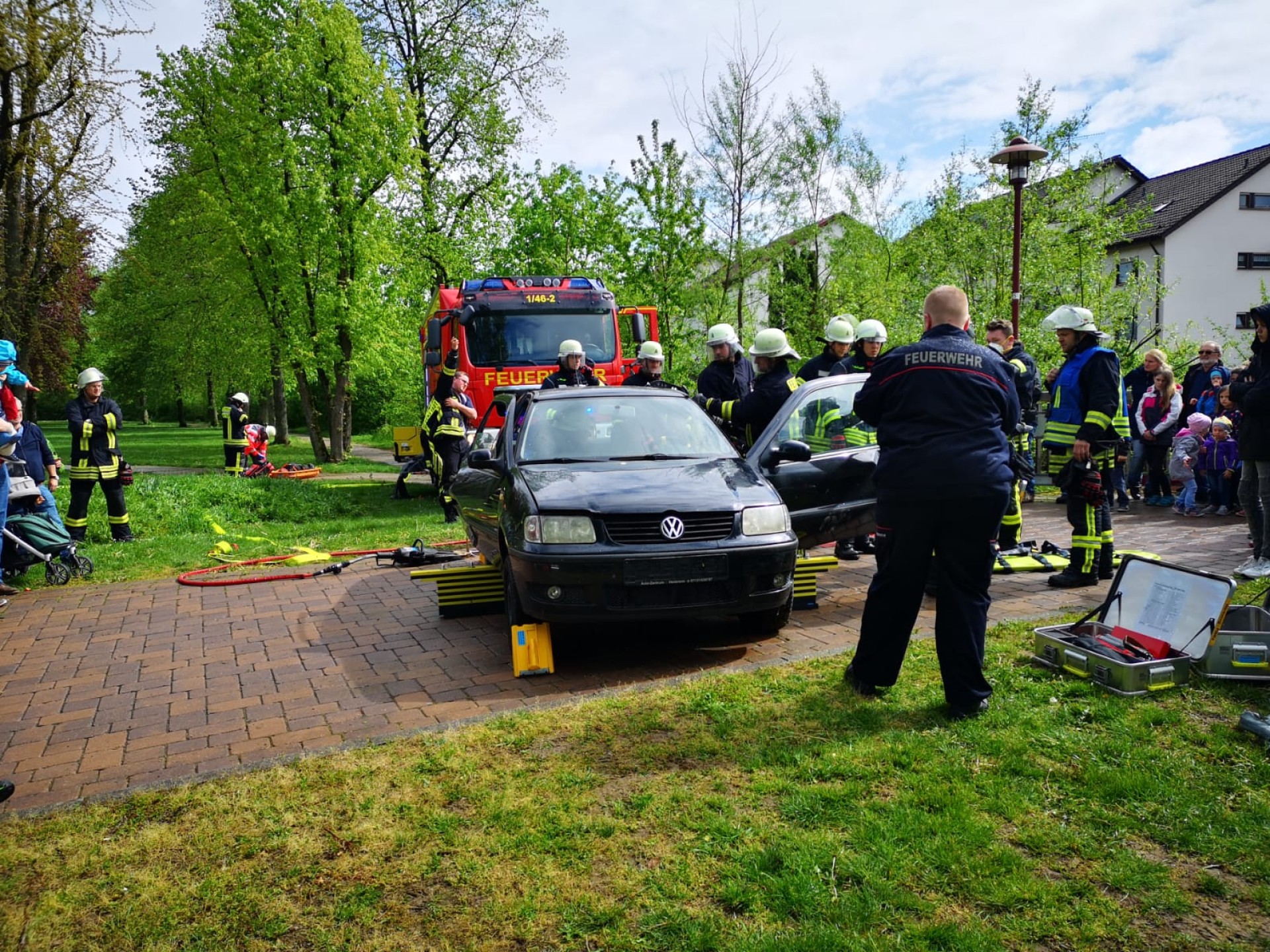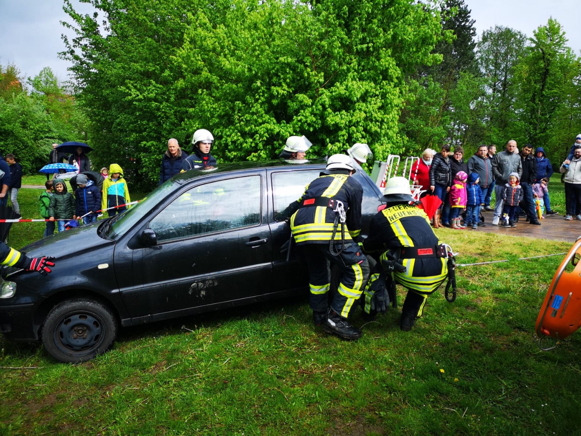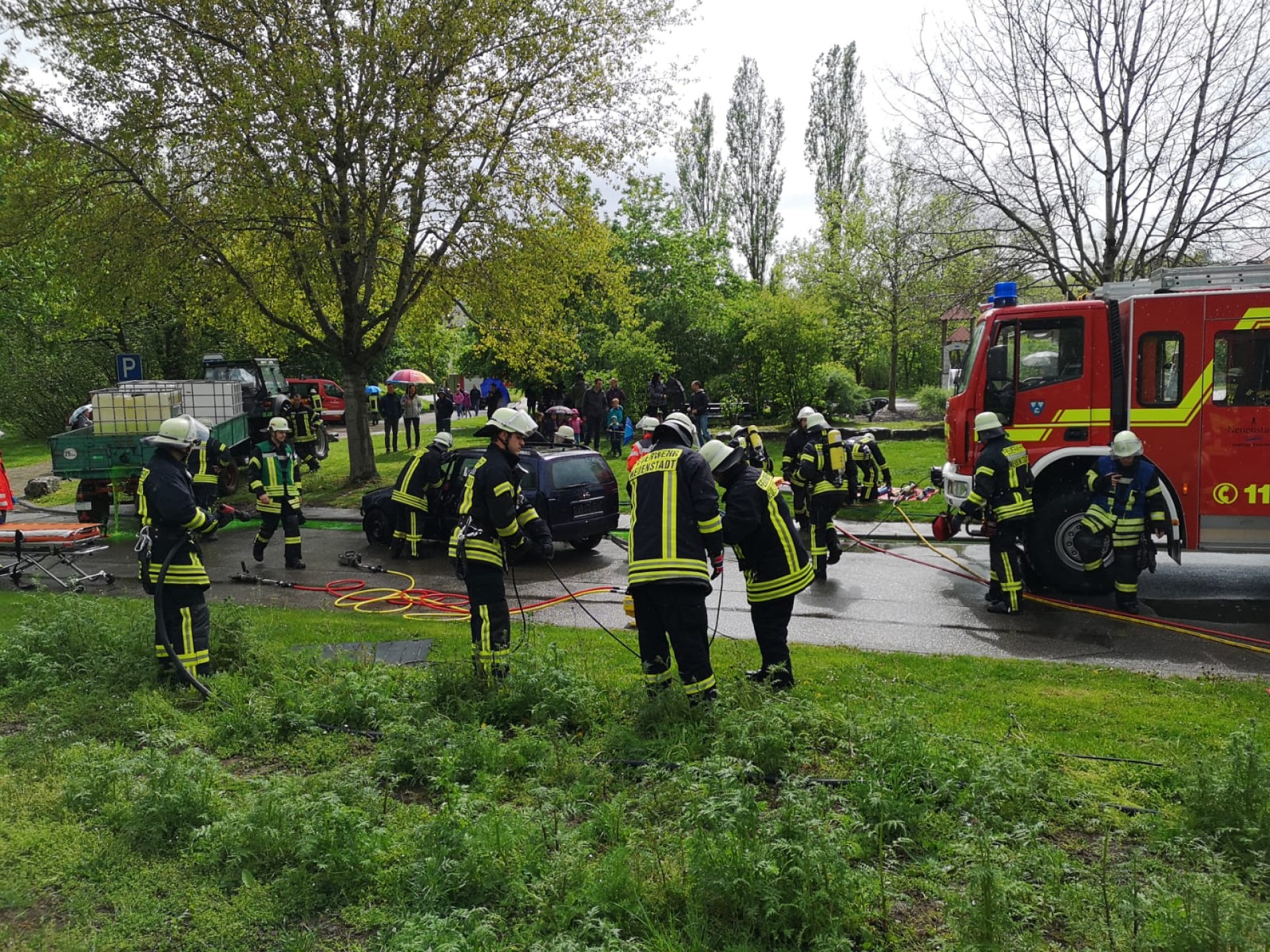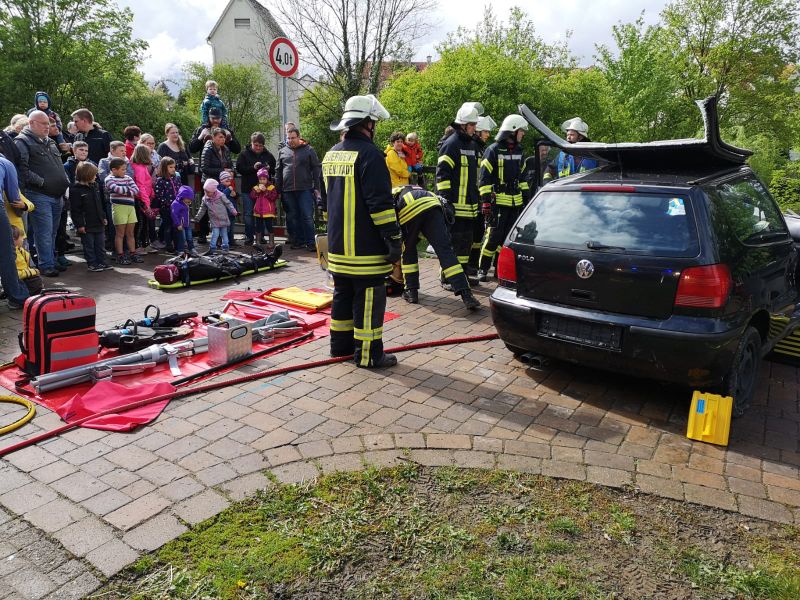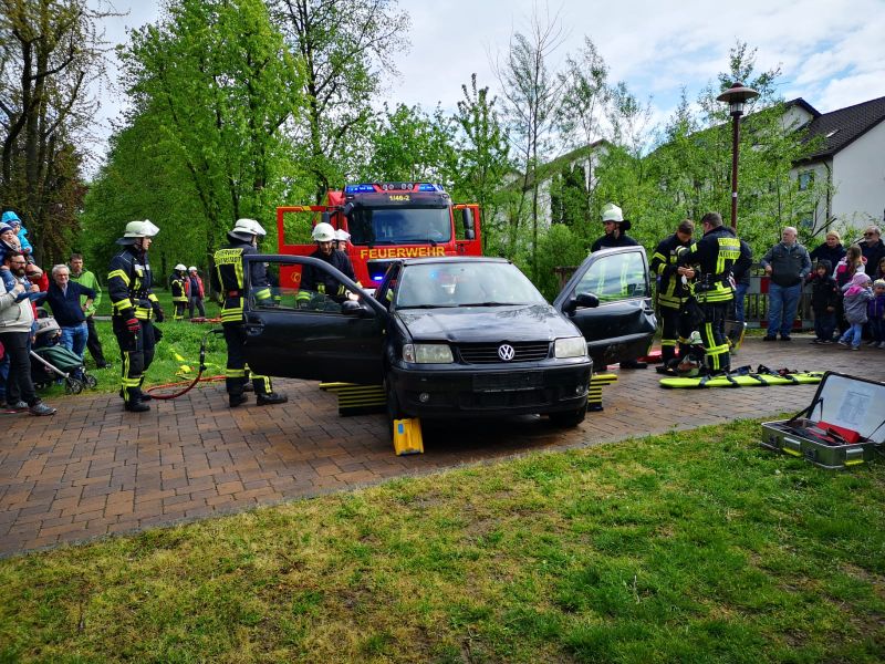 Einsatz. „Besonders bei Elektrofahrzeugen kann es für die Einsatzkräfte wegen der Stromkabel gefährlich werden“, erklärt Hartmut Schaffroth. Eine Gruppe Jungs beobachtet fasziniert, wie aus dem verunfallten Kombi ein Cabrio wird. Jakob und Finn, neun und acht Jahre alt, sind schon bei der Feuerwehr. Sie gehen in die Kindergruppe. Ben ist mit sechs Jahren noch zu jung, will aber auch hin, wenn er alt genug ist.