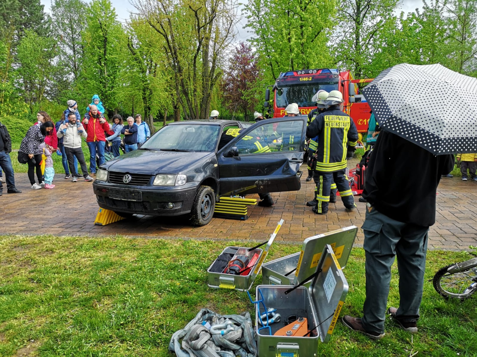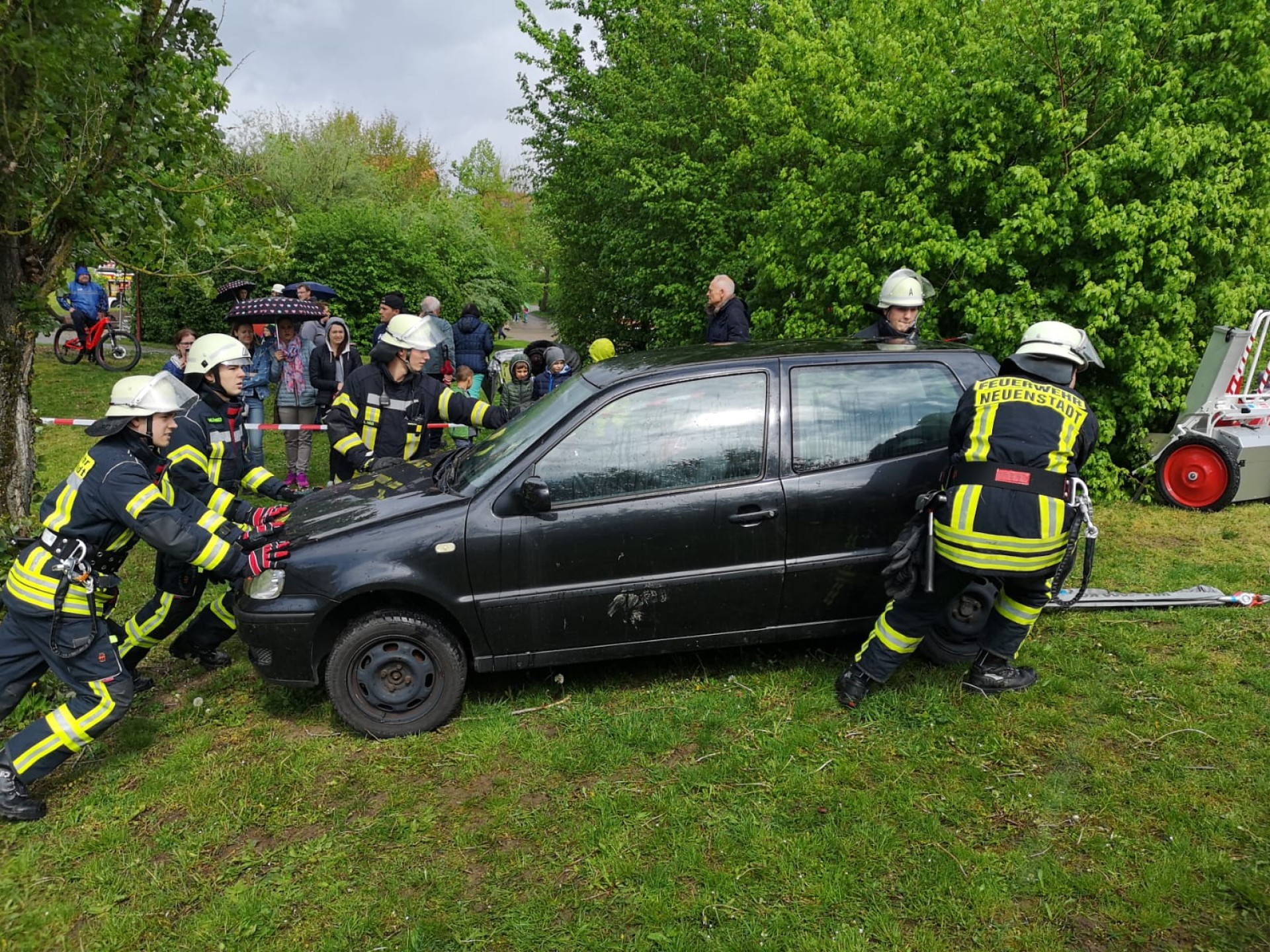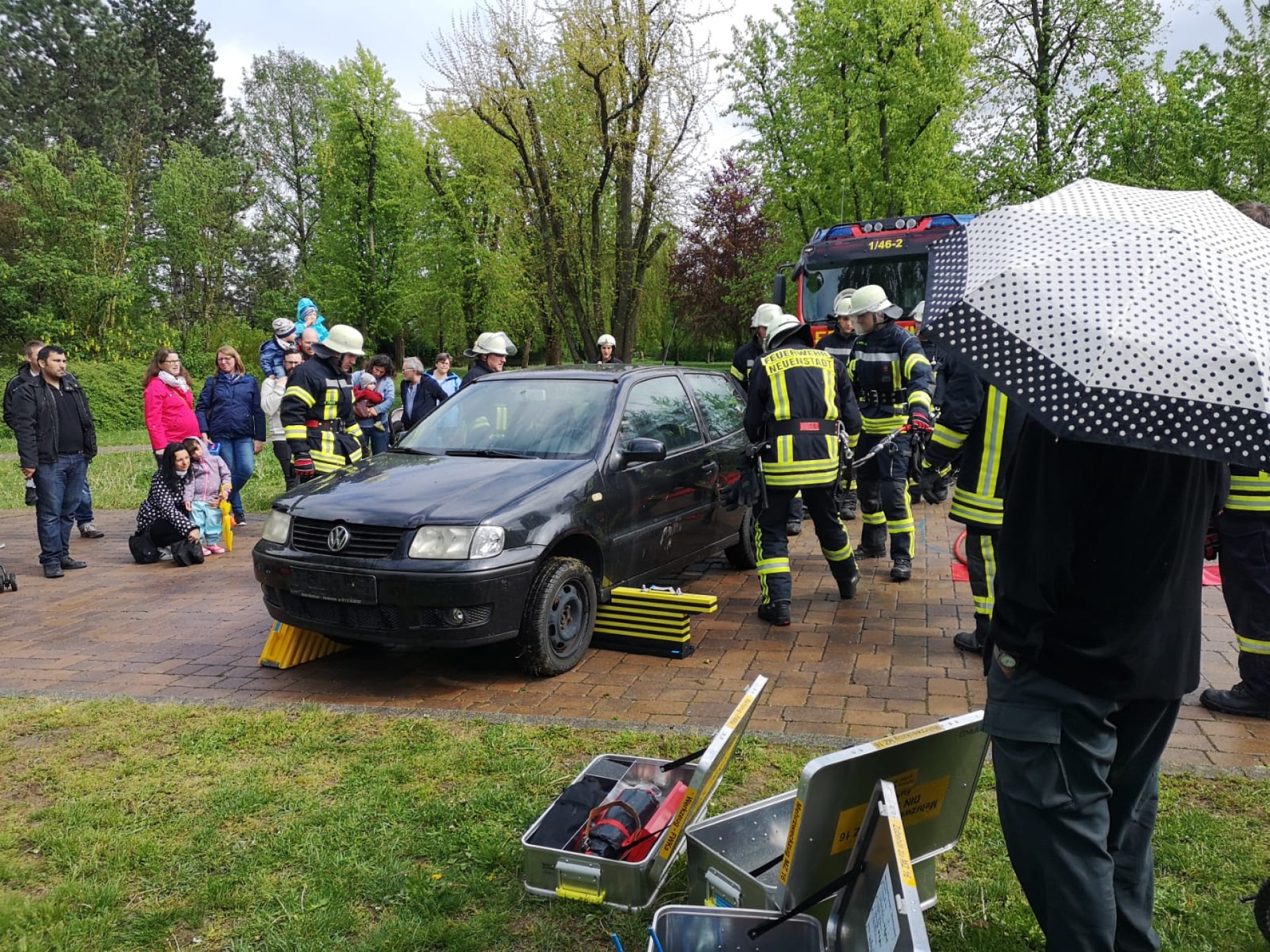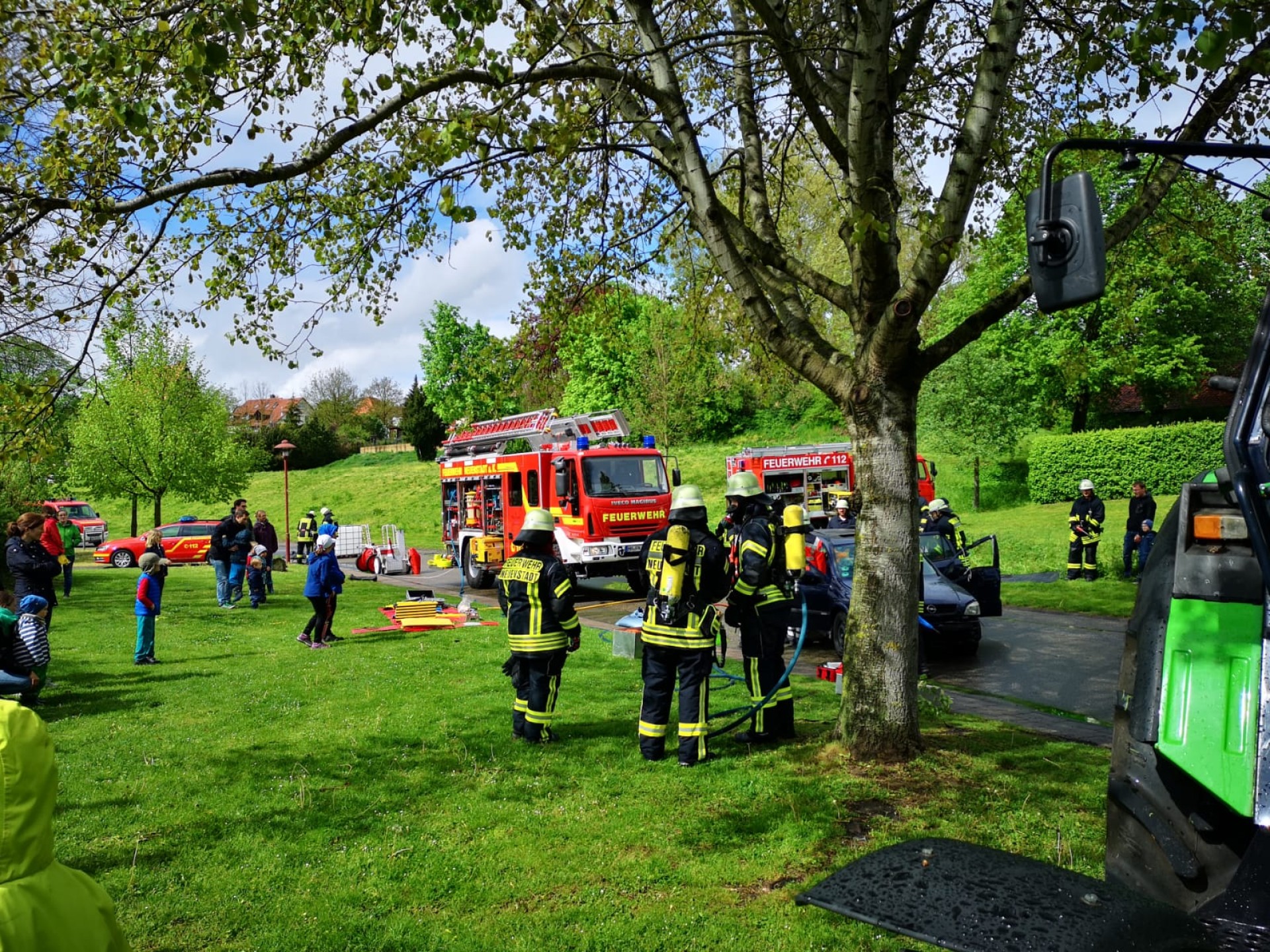 Einsatz. „Besonders bei Elektrofahrzeugen kann es für die Einsatzkräfte wegen der Stromkabel gefährlich werden“, erklärt Hartmut Schaffroth. Eine Gruppe Jungs beobachtet fasziniert, wie aus dem verunfallten Kombi ein Cabrio wird. Jakob und Finn, neun und acht Jahre alt, sind schon bei der Feuerwehr. Sie gehen in die Kindergruppe. Ben ist mit sechs Jahren noch zu jung, will aber auch hin, wenn er alt genug ist.