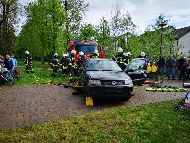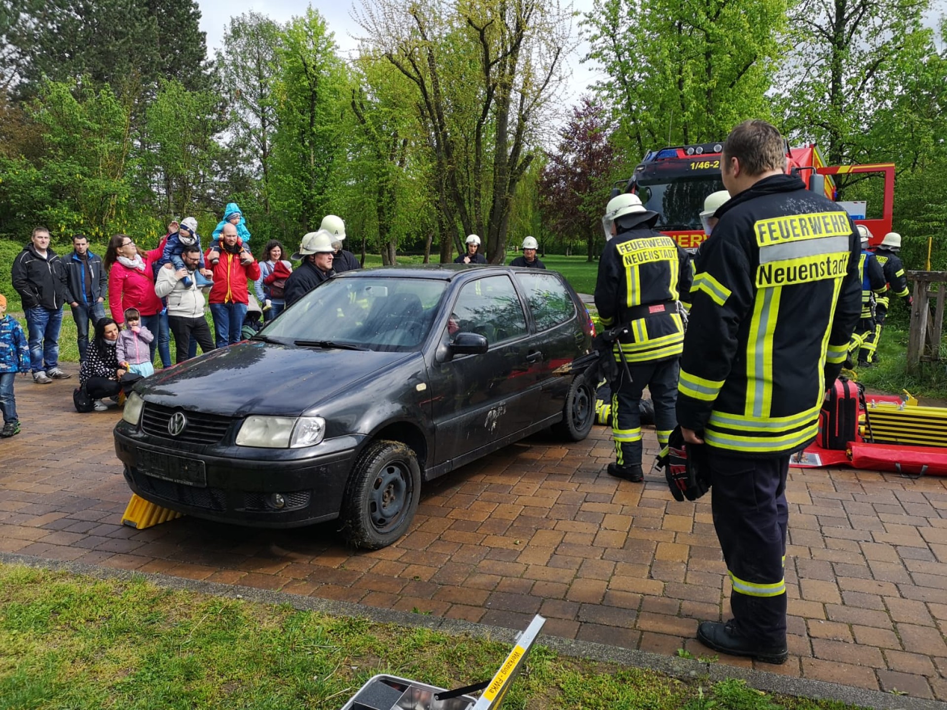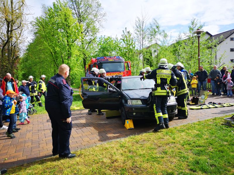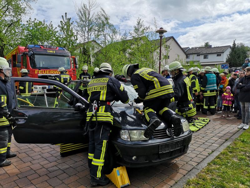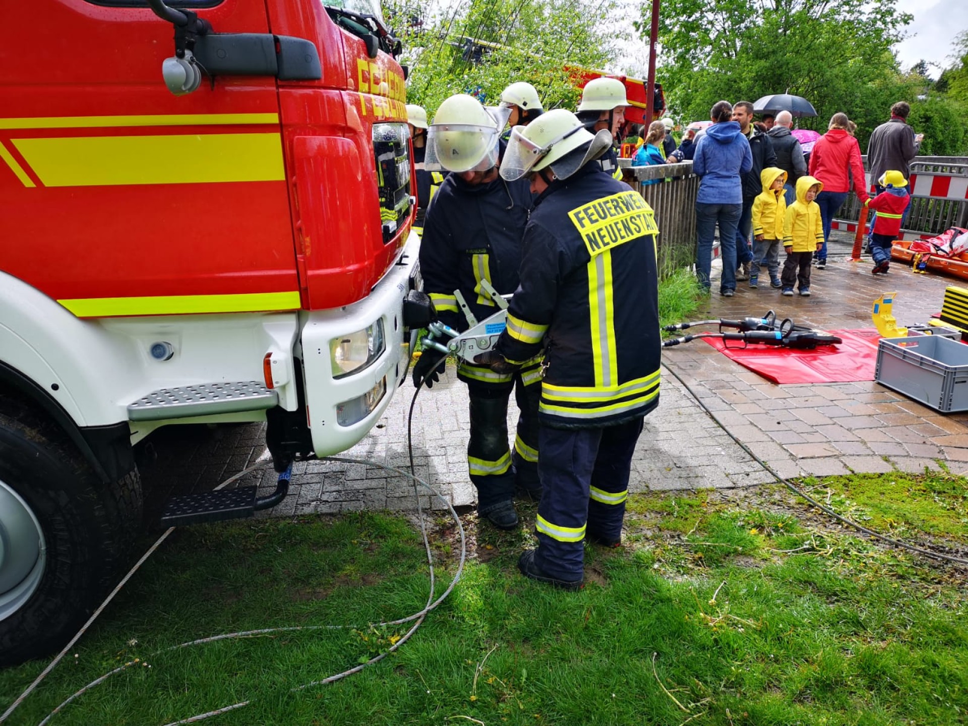 Einsatz. „Besonders bei Elektrofahrzeugen kann es für die Einsatzkräfte wegen der Stromkabel gefährlich werden“, erklärt Hartmut Schaffroth. Eine Gruppe Jungs beobachtet fasziniert, wie aus dem verunfallten Kombi ein Cabrio wird. Jakob und Finn, neun und acht Jahre alt, sind schon bei der Feuerwehr. Sie gehen in die Kindergruppe. Ben ist mit sechs Jahren noch zu jung, will aber auch hin, wenn er alt genug ist.