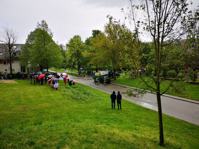 Kuchen auf die Besucher wartet. Nach und nach treffen auch die Feuerwehrleute ein. Ein bisschen geschafft sehen sie aus, kein Wunder nach eineinhalb Stunden Übung und bei mitunter 30 bis 40 Kilo Marschgepäck.