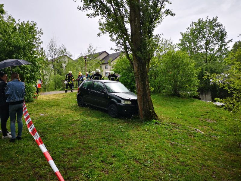 Erstversorgung der Insassen des schwer beschädigten Pkw unter Mithilfe des Roten Kreuzes. Um die Verletzten aus dem Wrack zu befreien, ist schweres Schneidegerät im