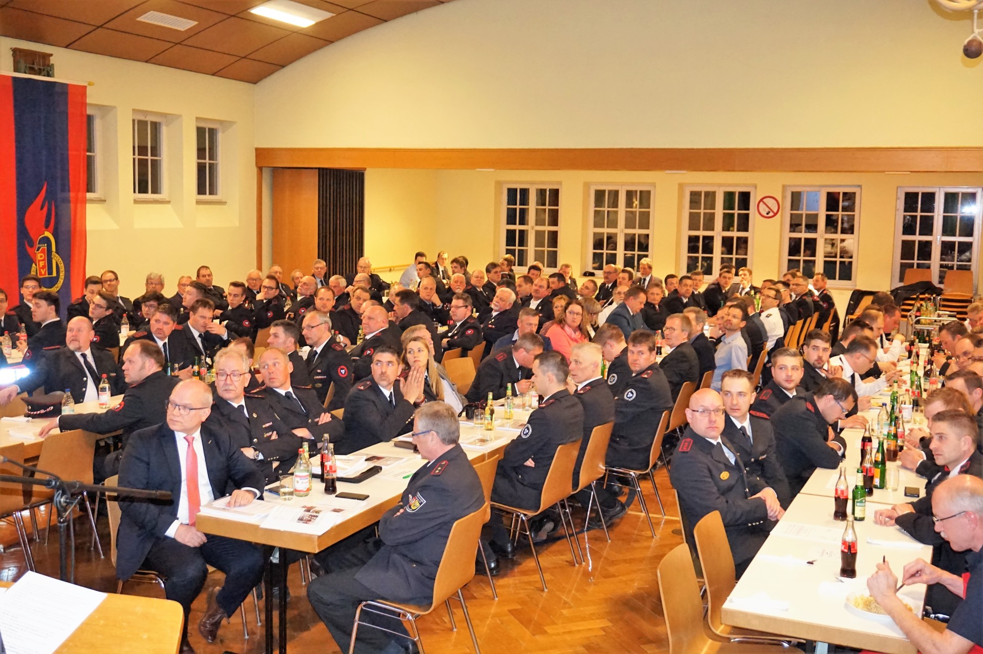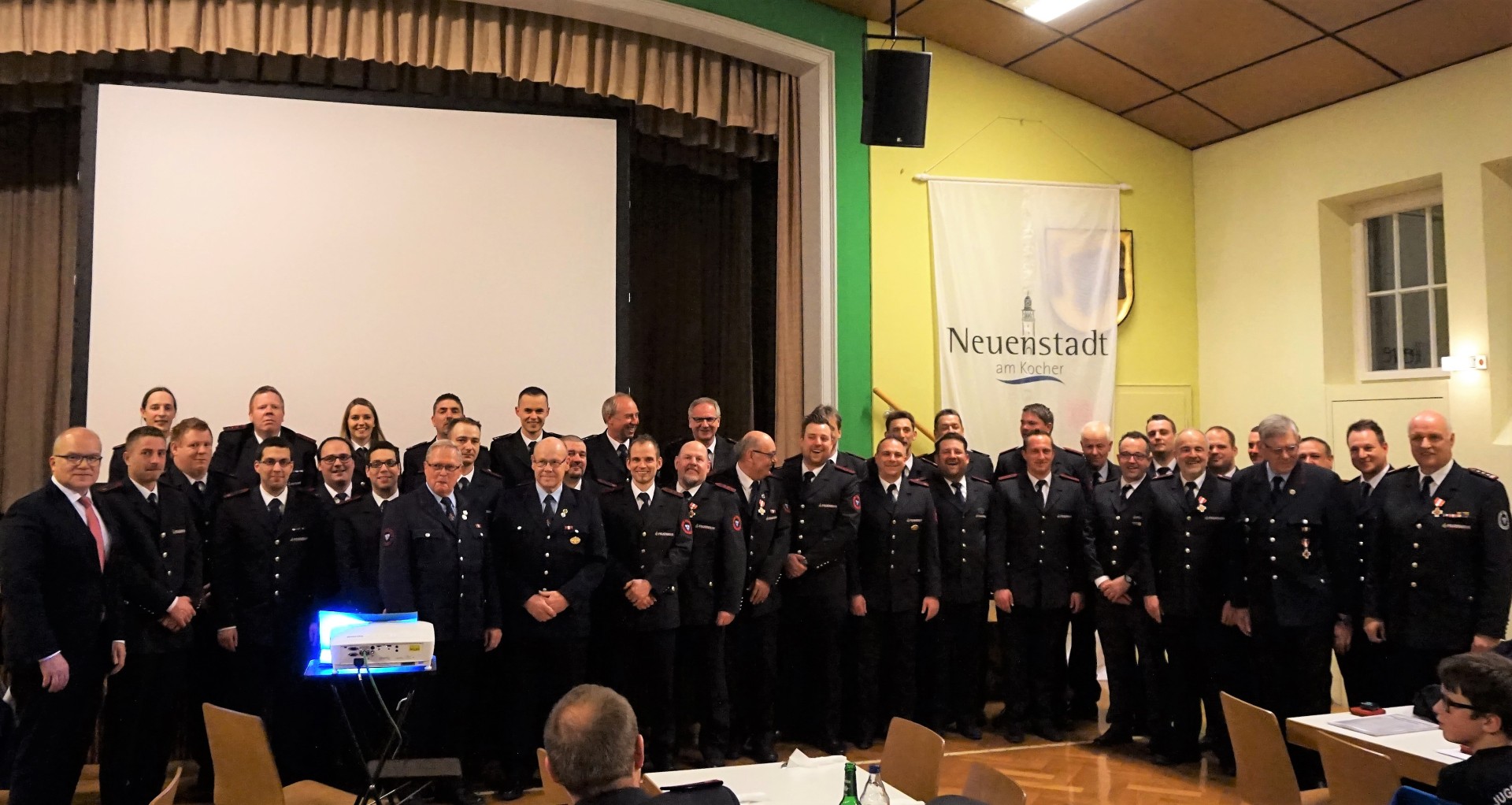 Mit 155 Personen war dieses Jahr die Hauptversammlung der Feuerwehr Neuenstadt in der Kelterhalle in Cleversulzbach sehr gut besucht. Neben zahlreichen Ehrengästen aus Verwaltung, Gemeinderat und Ortschaftsrat konnte Kommandant Hartmut Schaffroth den Kreisfeuerwehrverbandsvorsitzenden und Mitglied des Landtags, Reinhold Gall, auf der Veranstaltung willkommen heißen.