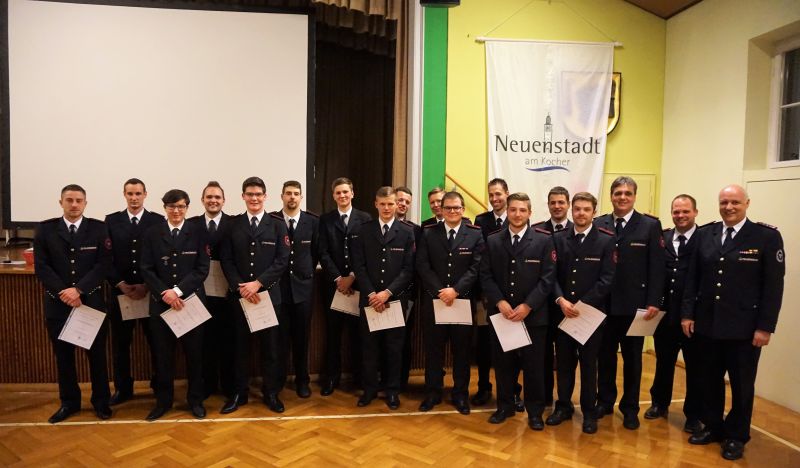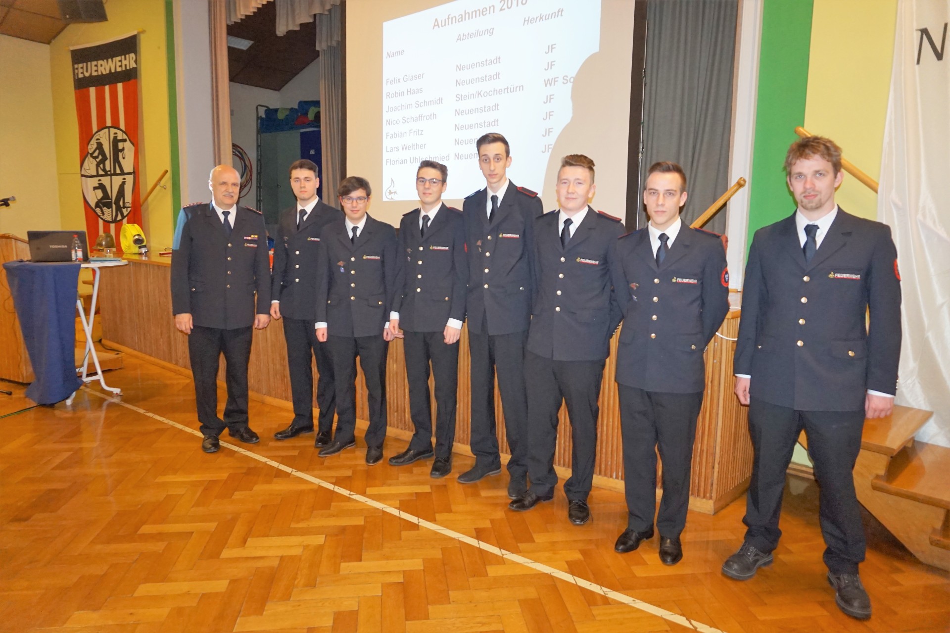Entgegen dem landesweiten Trend steigerte die Feuerwehr Neuenstadt im Jahr 2018 die Mannschaftsstärke sogar leicht. Durch sieben Neuaufnahmen in die Einsatzabteilung konnten Abgänge, bzw. Übergänge in die Altersabteilungen gut ausgeglichen werden.
