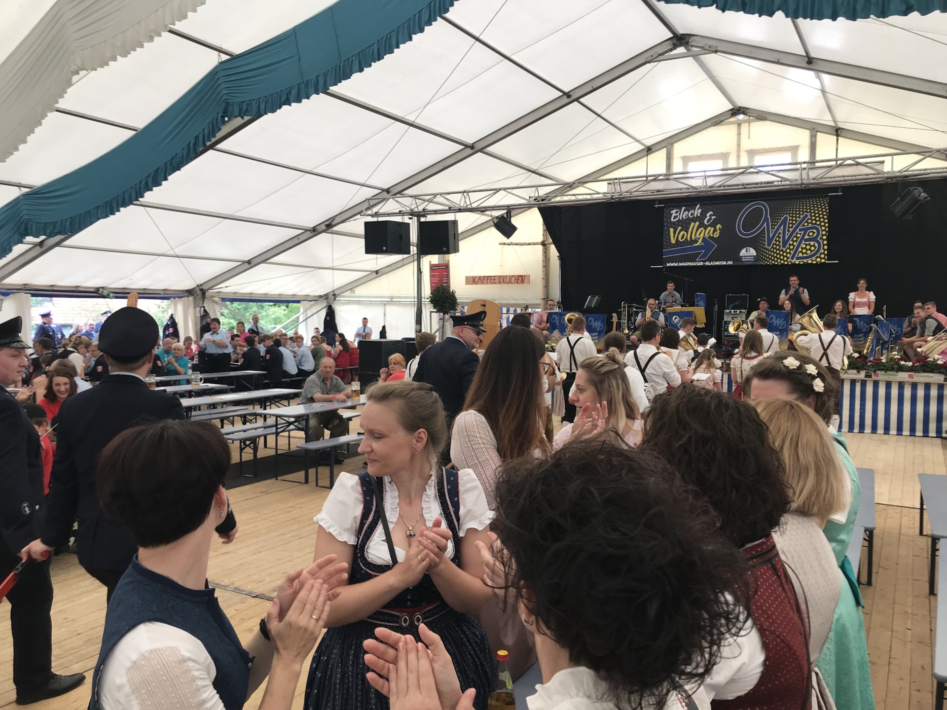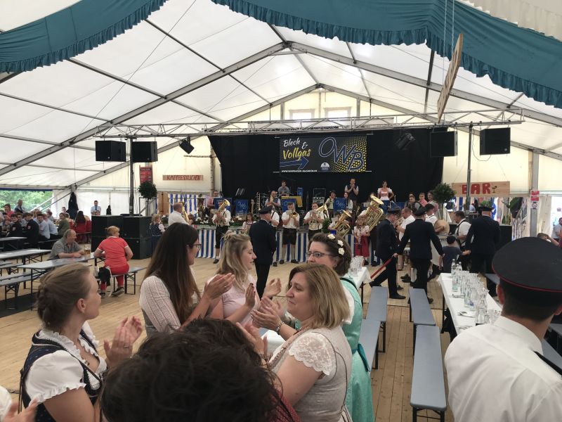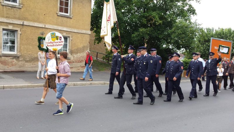 Am Eröffnungsabend spielte die Band KWO im Festzelt und konnte den Feuerwehrmännern aus Neuenstadt samt Begleitung einen guten Eindruck der Oberpfälzer Gastfreundschaft verschaffen. Am Samstag stand dann neben dem Wehrleitertreffen für die übrigen Reiseteilnehmer die Erkundung der näheren Umgebung im bayrisch-tschechischen Grenzgebiet auf dem Programm. Am späten Nachmittag konnten Kommandant Hartmut Schaffroth und sein Stellvertreter Tobias Schaffroth die Gastgeschenke und Grüße der Neuenstadter Feuerwehr übergeben. Gegen Abend war der Höhepunkt ein Auftritt der bekannten Gruppe „Dorfer“, welche für eine gute Stimmung auf dem Festgelände sorgte. Am Abreisesonntag fanden sich die Feuerwehrkameraden zu einem Gottesdienst auf dem Festplatz ein. Den Abschluss bildete ein Festumzug durch die Altstadt der Kreisstadt mit den teilnehmenden Wehren und den Feuerwehren des Landkreises Neustadt. Insgesamt waren es 97 teilnehmende Gruppen.