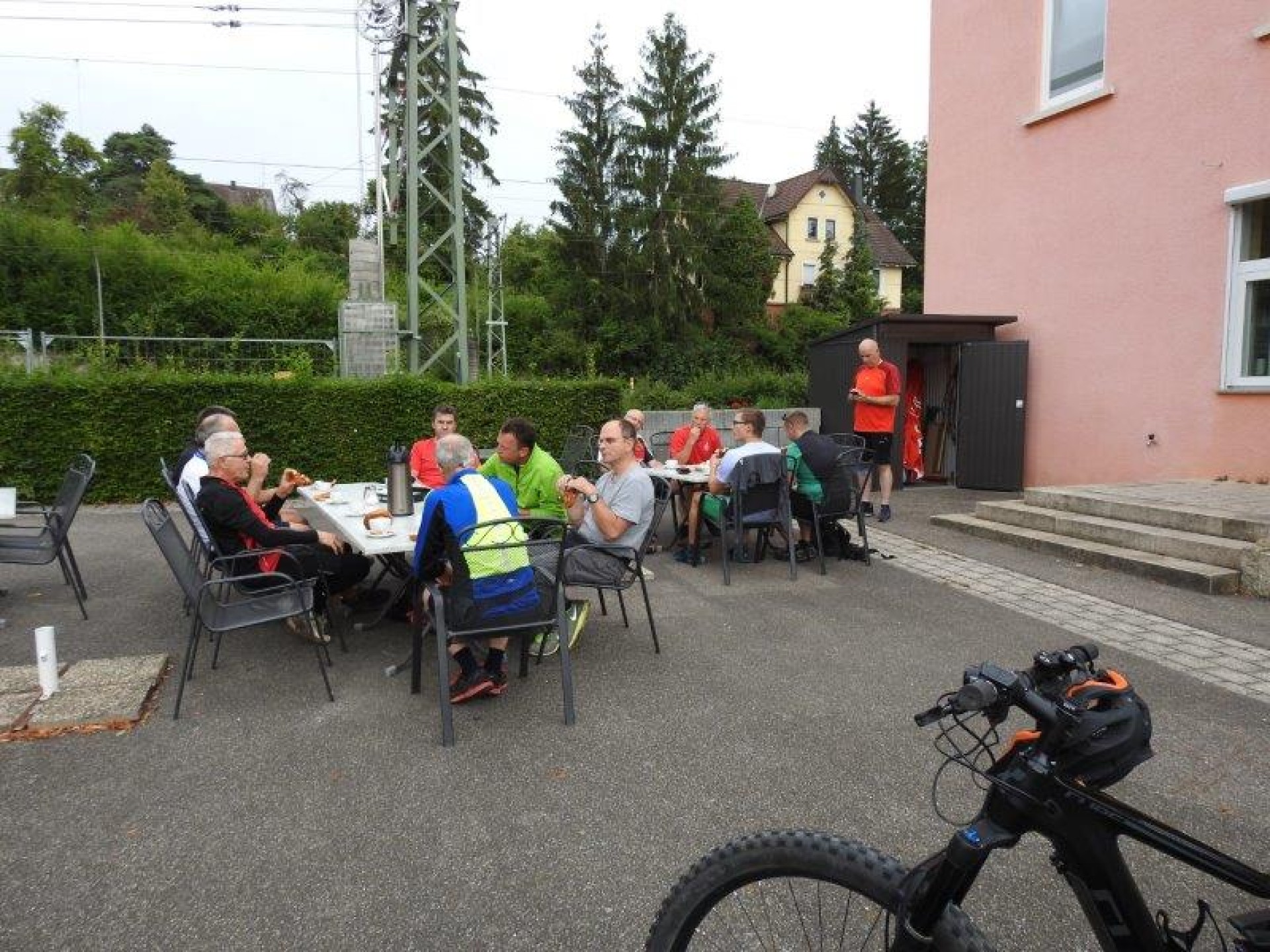 Über Kressbach ging es nach Züttlingen. Von dort fuhren wir der Jagst entlang bis zur ersten Verpflegungsstelle, das Cafe-Bistro „Alte Post“ in Möckmühl am Bahnhof, wo wir schon mit Kaffee, Butterbrezeln und belegten Brötchen erwartet wurden.