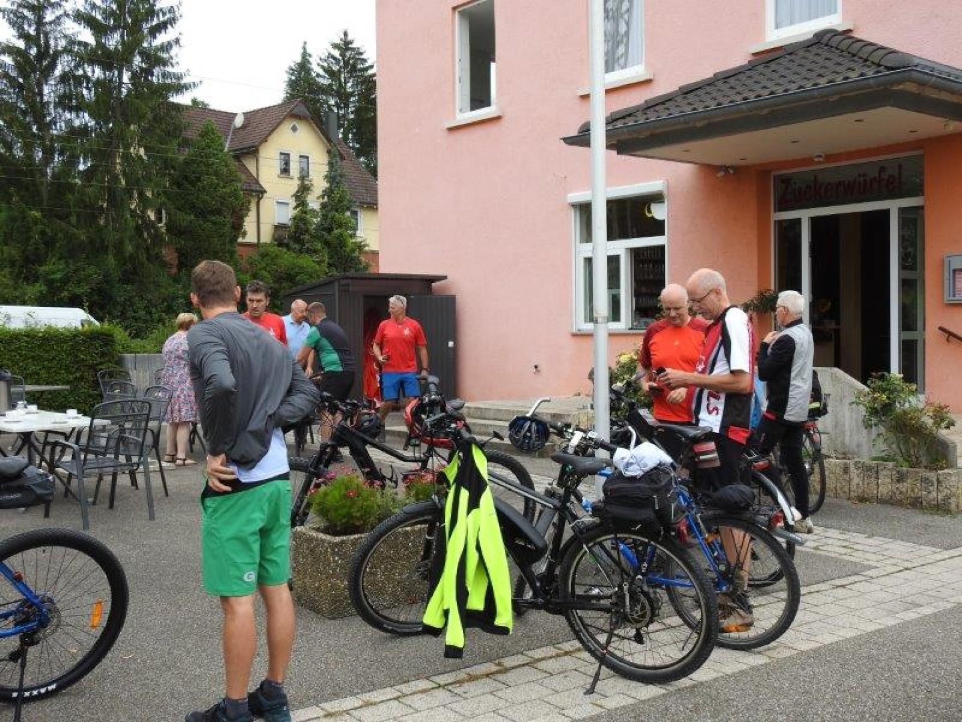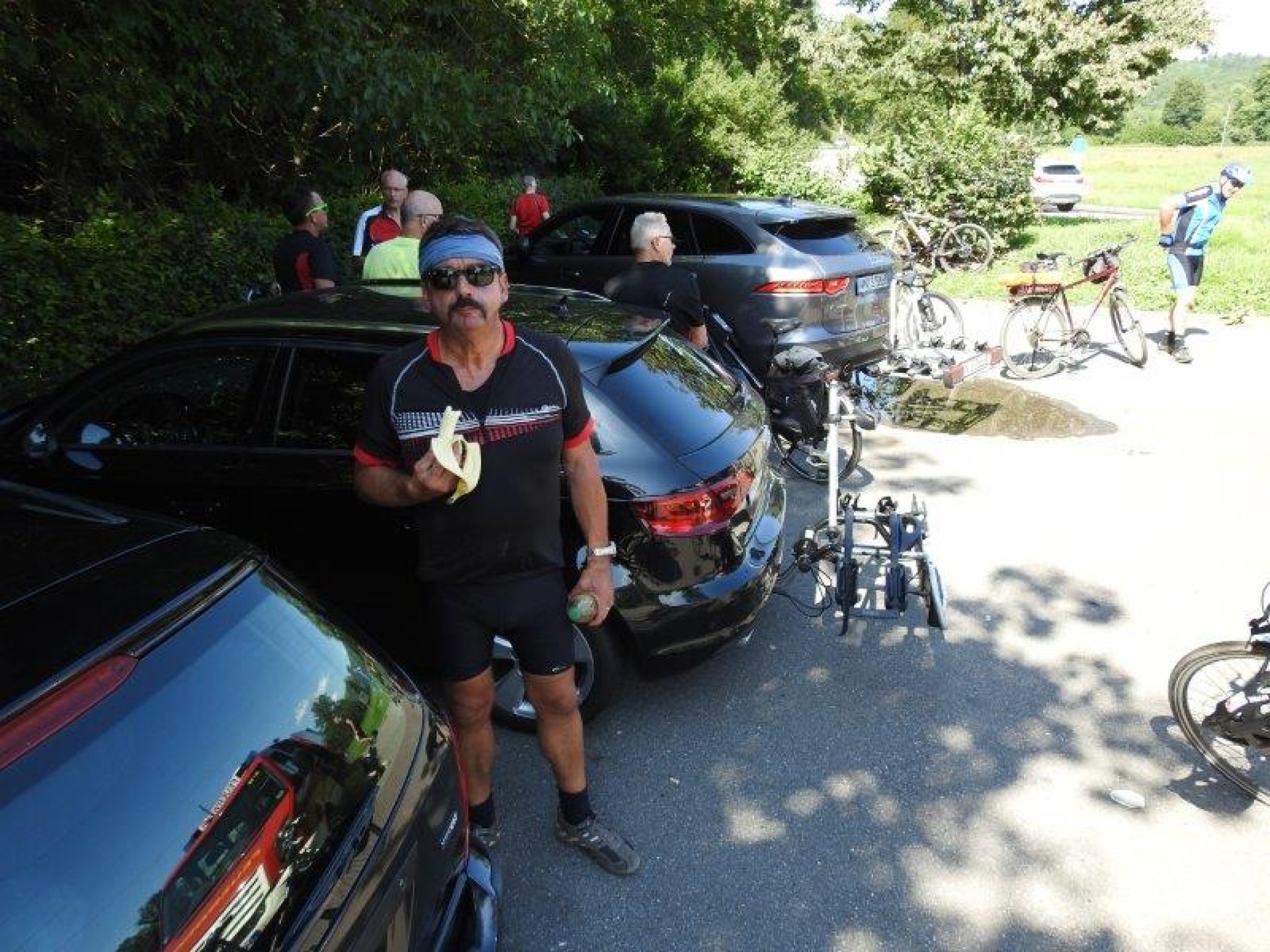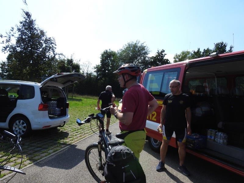 Wir waren eine gemischte 12er-Gruppe mit E-Biker und konventionellen Radfahrer sowie Harald Häußler als Begleitperson in unserem MTW, der uns während der Tour mit Getränke, Obst und Müsli-Riegel versorgte.