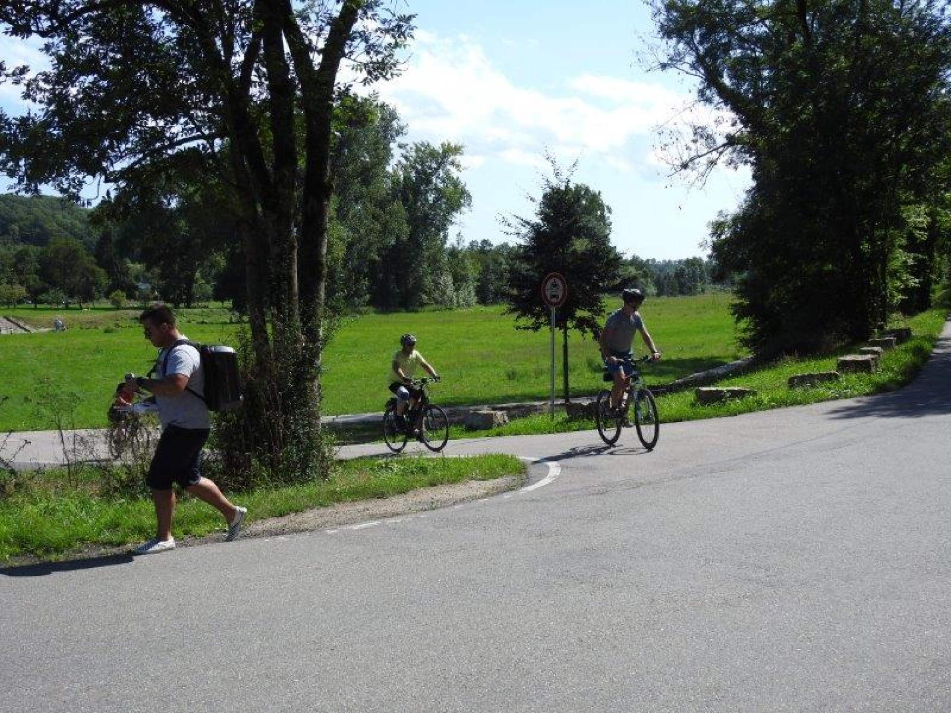 Über den „Skulpturenradweg“ ging es bei leichtem Nieselregen der Seckach entlang durch Adelsheim bis nach Seckach-Zimmern. Dort wurden wir durch einen technischen Halt ausgebremst.