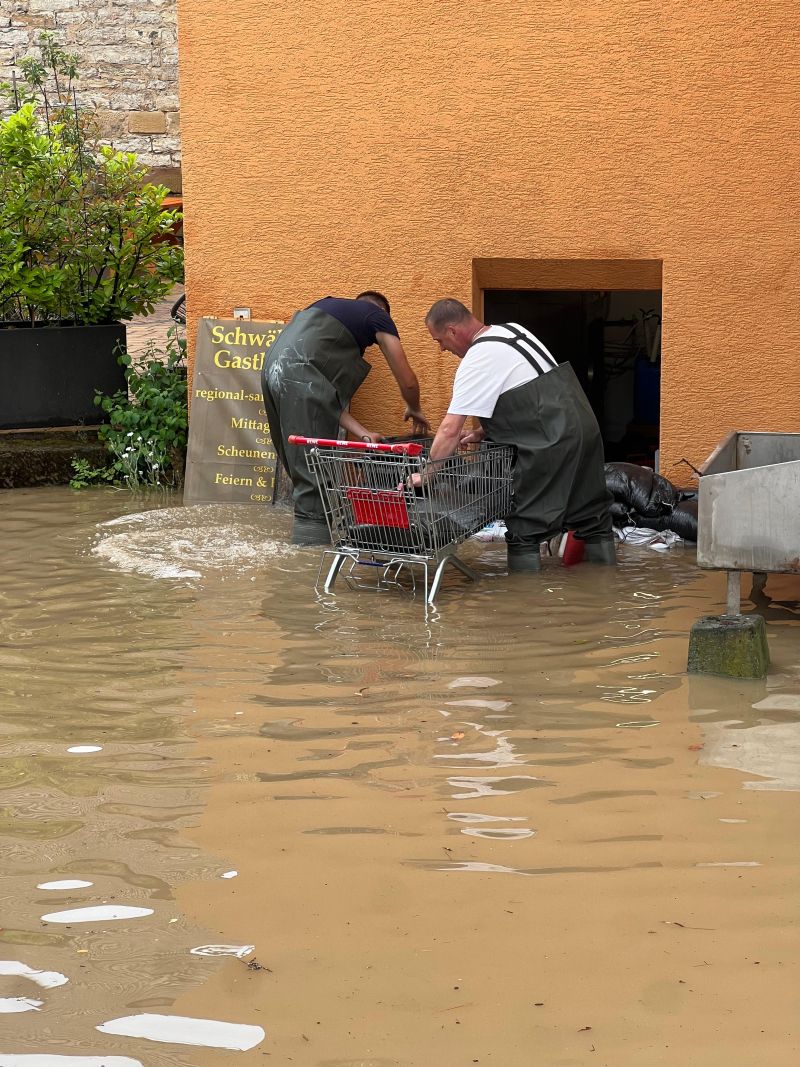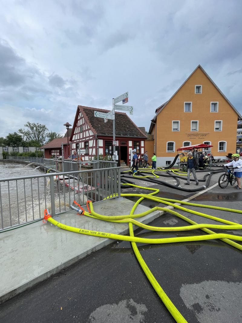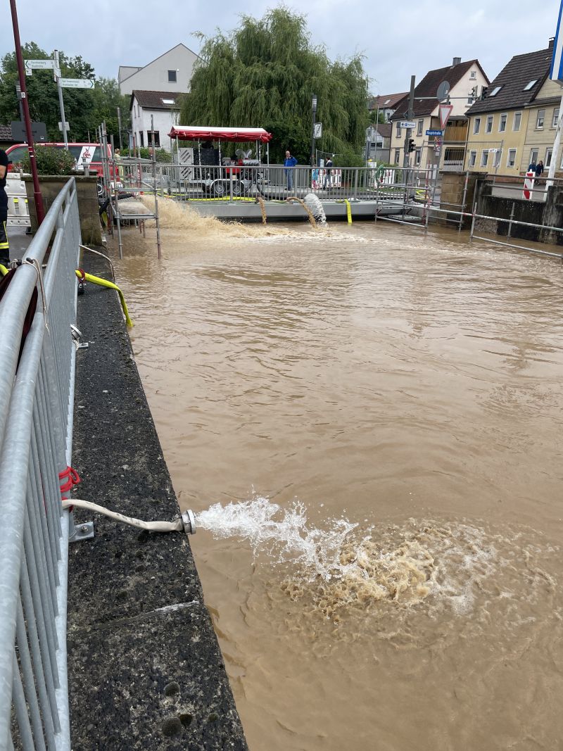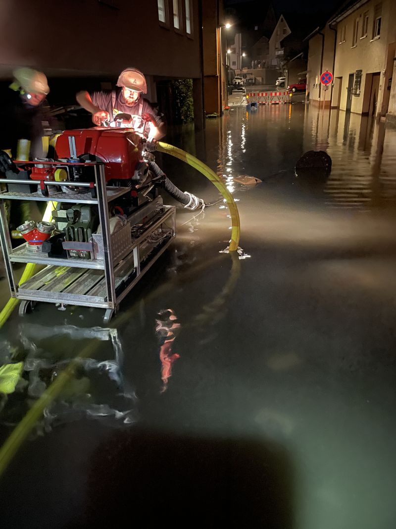 Am 01.06. um circa 22:00 Uhr erhielt die Feuerwehr Neuenstadt die erste Meldung über vollgelaufene Keller im Bereich der Brettachbrücke. Nach etwa zwei Stunden konnte die erste Einheit wieder abrücken.