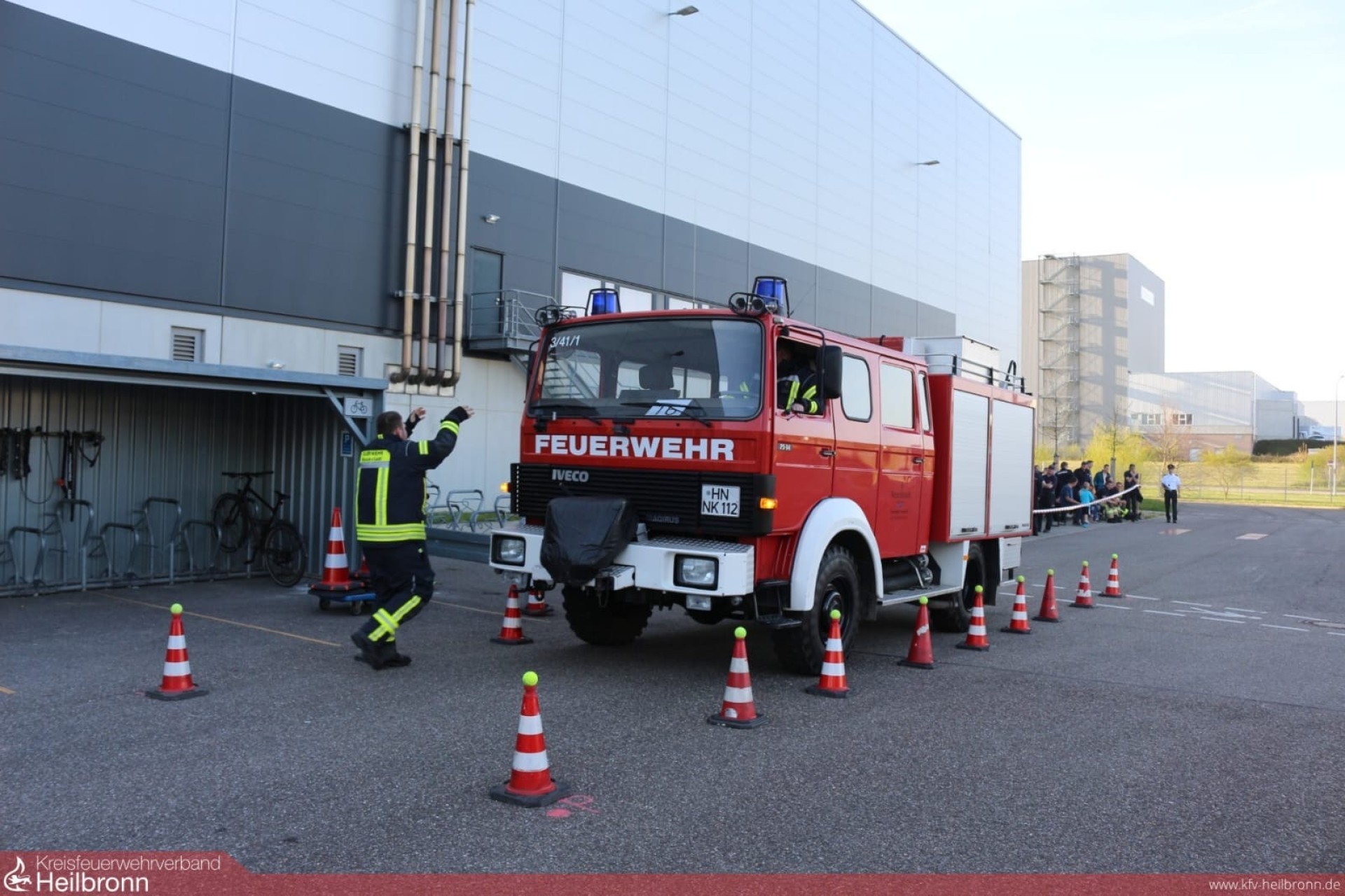 Die Herausforderung bestand darin, das in die Jahre gekommene Löschgruppenfahrzeug LF8 aus dem Baujahr 1991 sicher und präzise durch den Parcours auf dem Gelände der Werkfeuerwehr Audi in den Böllinger Höfen zu manövrieren. Dieses robuste Einsatzfahrzeug, das ohne moderne elektronische Helfer und Automatikgetriebe auskommen muss, forderte von den Fahrern volle Konzentration und ein exaktes Zusammenspiel mit ihren Einweisern.