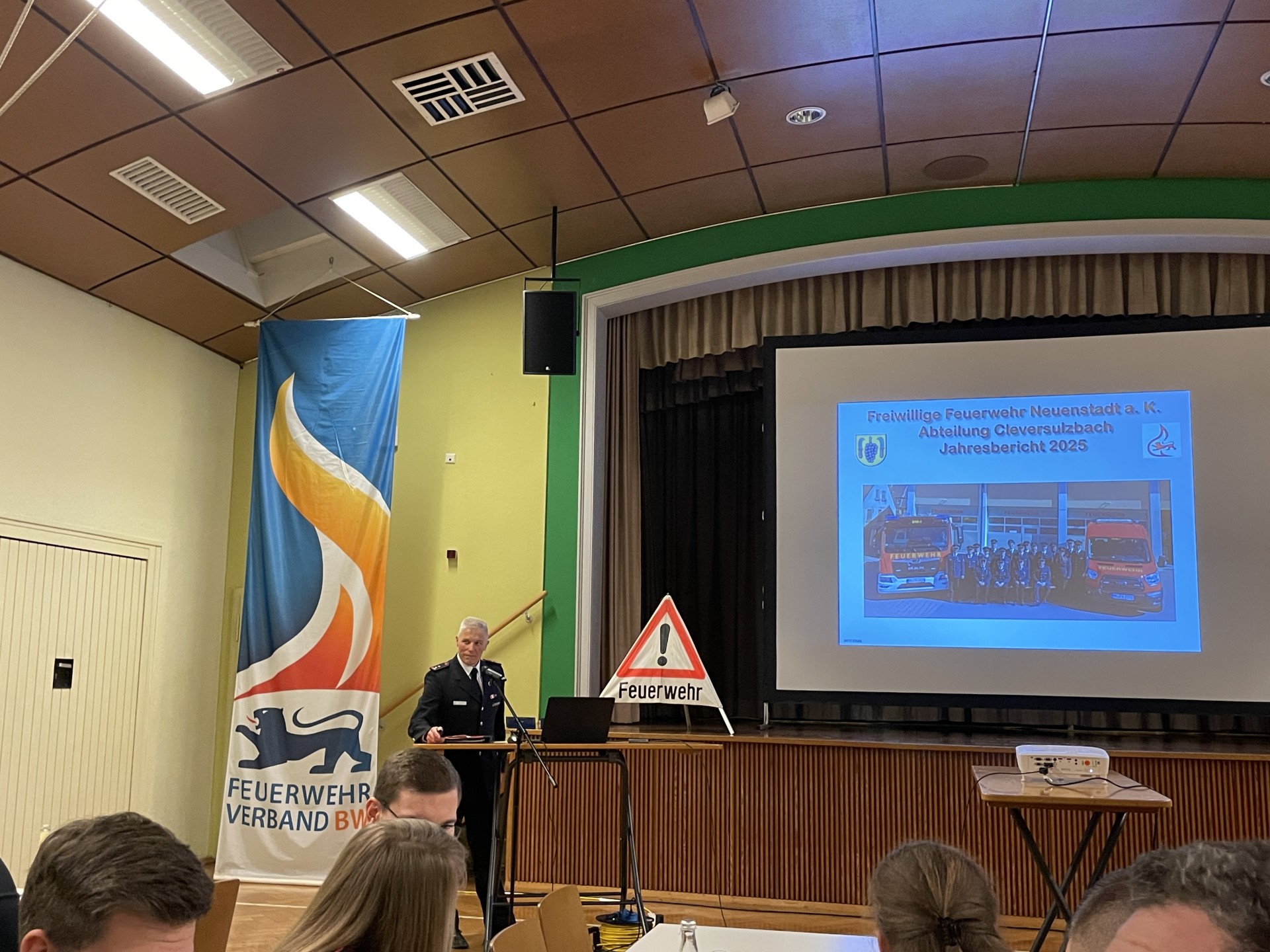 Die gemeinsame Abteilungsversammlung der Feuerwehrabteilungen Neuenstadt und Cleversulzbach fand erneut in der Kelterhalle in Cleversulzbach statt. Zur Versammlung trafen sich die Einsatzabteilungen sowie die Mitglieder der gemeinsamen Altersabteilung. Abteilungskommandant Andreas Küstner begrüßte die anwesenden Kameradinnen und Kameraden sowie die Ehrenkommandanten Rudolf Schuster und Hartmut Schaffroth und den Kommandanten Tobias Schaffroth. Im Mittelpunkt standen die Berichte der beiden Abteilungen sowie das Grußwort des Kommandanten.